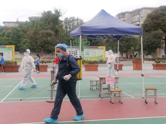 本次演练假设前提背景在疫情低风险地区,雏鹰学校接到通报,学生王某为新冠肺炎病例的密切接触者,经摸查,王某的密切接触者共有100人。发生疫情后,学校启动应急预案,医疗保障组、消毒组、安全后勤保障组、信息联络组及宣传和心理疏导组做好应急响应准备。