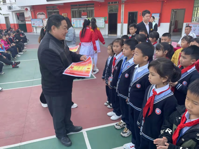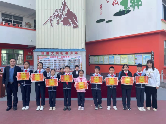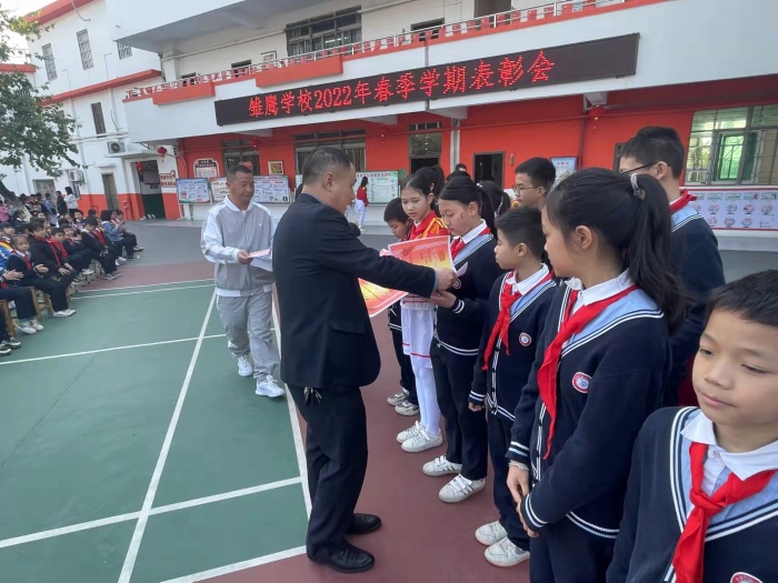 少先队大队辅导员黄雪梅给获得“文明班集体”“学习强国优秀组织奖”的班级颁发了奖状。同时教务处对2021-2022年秋季学期获得“学习之星”学生进行了表彰,颁发奖状与奖品。一时间掌声雷动,气氛热烈。