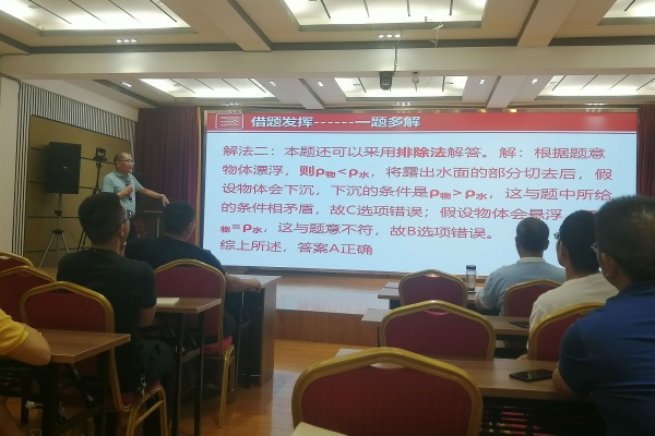 在家门口就能聆听专家讲座。2020年6月16日晚上,广东省南粤优秀教师、中学物理高级教师,中山市物理教研中心组成员、黄圃镇中学郭少江副校长在永善民族小学会场给永善县全县物理老师带来讲座:《中考备考经验交流——复习课“借题发挥”的策略》,他将两地中考物理试题题型进行对比分析,并把广东省卷近七年中考物理试题分析及解题要诀等方面倾囊相授,分享了多年的物理教学思想、方法、经验,尤其是“一题多问”、“一题多解”、“一题多变”等策略展示了物理学科思维的广度和深度,同时接地气、操作性强。全场物理老师静心聆听,抓紧拍照,同步思考。以讲座为桥梁,与名师同行,永善县的物理教师们必定走得更快更远。