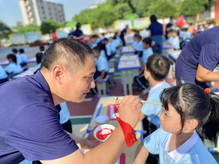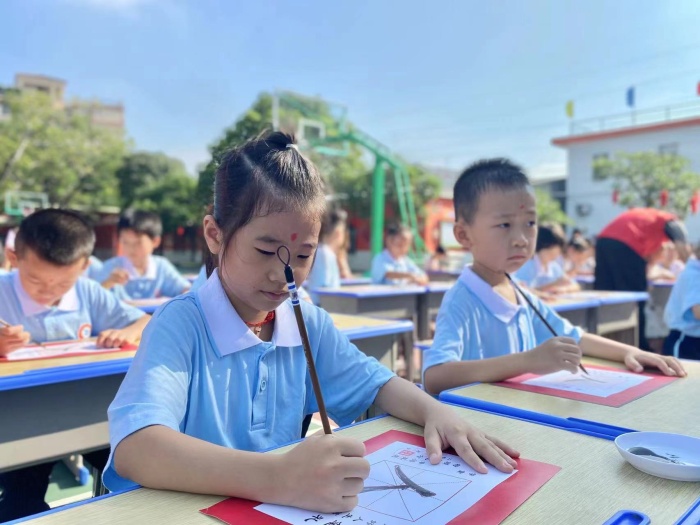 迎着快乐的朝霞,沐浴明媚的阳光,哼唱幸福的歌谣,开启求知的旅程,遨游智慧的海洋。为了喜迎党的二十大胜利召开,也为了让一年级新生能领略到我国优秀传统文化的魅力,9月13日,雏鹰学校开展了“童心向党?朱砂启智?开笔启蒙——一年级新生开笔礼”,让这群刚入学的孩子们在懵懂中亲身体验了人生第一礼——“开笔礼”。