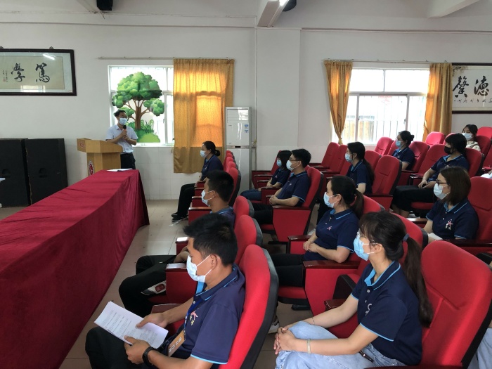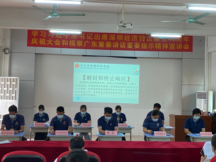 为切实有效地防范和积极应对春季新冠肺炎疫情,进一步提高应急能力,及时、科学、规范、有序处置可能出现的新冠肺炎疫情。2022年5月10日上午,中山市黄圃华洋学校开展了新冠肺炎疫情处置桌面推演。中山市黄圃华洋学校聂长红校长、各应急组员代表以及学校教师参与了这次演练。黄圃镇教育和体育事务中心教研员姚劲强老师和黄圃镇人民医院副院长杨灵院长莅临学校指导疫情防控应急演练活动。