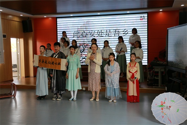 接着,与会老师共同欣赏了升辉小学师生带来的传统节目展演。展演上,童声手势舞演绎中华孝道;吟诵社团的吟咏让人如痴如醉;低年级师生的《粤童谣》仿佛把大家带到儿时无忧无虑的日子;中高年级的情景剧带着大家穿越到宋朝,感受苏轼的潇洒。