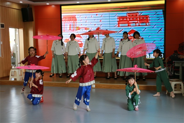 活动伊始,南头镇升辉小学民乐社团、剪纸社团、书法社团为嘉宾老师们呈现精彩纷呈的社团成果。民乐团演奏的《没有共产党就没有新中国》以传统乐器演绎红色经典歌曲,让人耳目一新;剪纸社团成员的剪刀在一张张红纸上翻飞,转出副副古韵悠悠的窗花剪纸;书法社团成员在一笔一画中诠释中华文化。