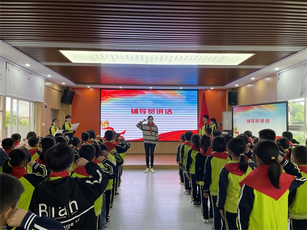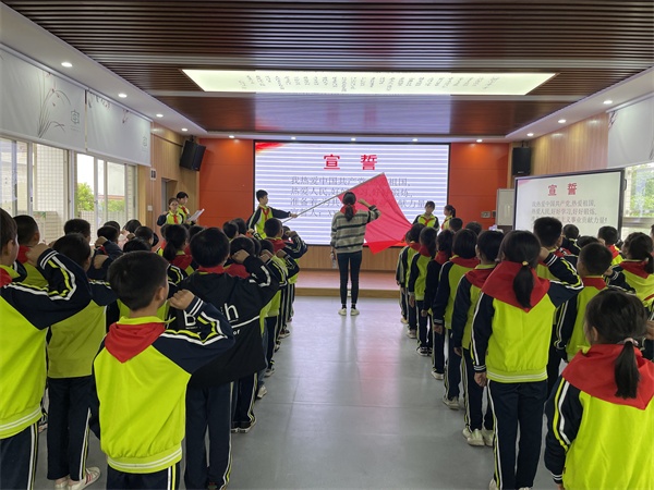 刚佩戴上红领巾的新队员们个个精神抖擞,在大队辅导员的带领下,他们高高举起右拳,庄严宣誓:“我热爱中国共产党,热爱祖国,热爱人民,好好学习,好好锻炼,准备着,为共产主义事业贡献力量。”同时,大队辅导员江婷婷老师为新队员送上寄语:“希望你们以一名少先队员的标准严格要求自己,主动向身边的榜样学习,向老队员学习,学习他们的优秀品质,自律、自学、自立,做一名全面发展的优秀少先队员。”