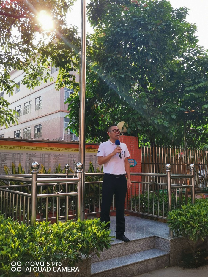 首先,全体师生庄严肃穆,升国旗唱国歌。接着梁庆堂校长在全体师生热烈的掌声中发言致辞。梁校长为同学们作交通、人身等方面的安全教育,警醒同学们“安全无小事”,并且警示同学们远离毒品,珍爱生命;还要求珍惜春光,努力奋斗,在新的学期里,要用更加严格的标准来要求自己,学会读书、学会生活、学会探索新知。同时,结合中山市创文行动,倡导同学们从身边做起,从自身做起,为创建文明城市作出努力。紧接着,梁校长为同学们上了开学的第一课,鼓励同学们真正理解学校和容文化,并且身体力行地去做到“和而不同,有容乃大”的精神内涵,努力提高自己的学习自觉性,做一个文明的优秀小学生。