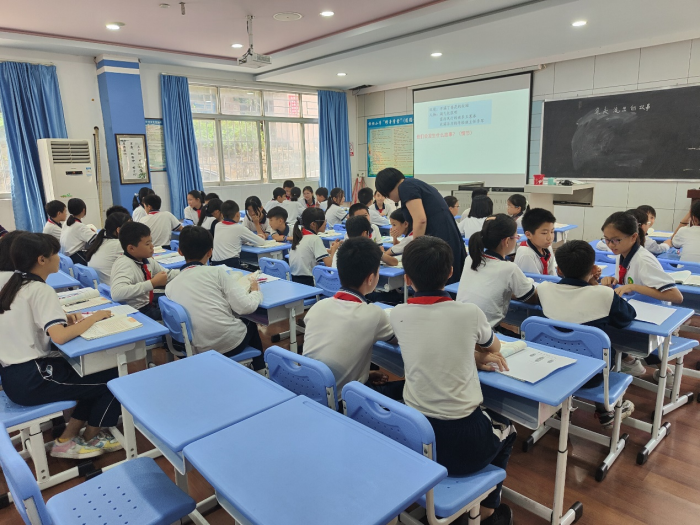 第一节研讨课由横档小学新教师叶逢煦带来三年级上册《金色的草地》。叶老师语言亲切,教态自然,通过多种方式让学生感受蒲公英的变化,激发学生观察世界的兴趣。课堂中以学生为主体,讲练结合,整个过程中学生积极性高,参与面广。第二节课是横档小学许萍仙老师带来的六年级习作指导课《笔尖流出的故事》。许老师的课前准备充分,认真把握教学重难点,教学环节环环相扣,教学语言干脆利落,学生积极配合,收到了良好的教学效果。