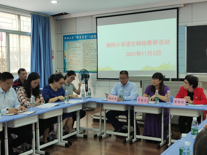 在“双减”政策背景下,为进一步提高语文教师对课程标准和教材的理解,发挥优秀教师对青年教师的指导和激励作用,黄圃镇横档小学语文科组开展了镇内研讨交流教研活动。参加本次活动的有黄圃镇教育和体育事务中心教研员罗银芬老师、团范小学原校长黄转娇同志、横档小学校长谢秋通、黄圃镇小学语文中心教研组全体成员、黄圃镇部分学校的语文教师、横档小学教导主任曾莲主任和语文科组全体教师。