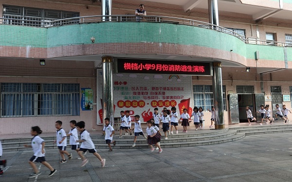 校园安全关系着学校每一位师生,为了构建和谐、平安校园,大力营造“关注安全,关爱生命”的浓厚氛围,使师生了解防震、疏散、消防等应急防控知识,在面对危险发生时能正确采取防护措施和方法,2020年9月21日上午,横档小学举行了本学期第一次常规消防逃生演练。