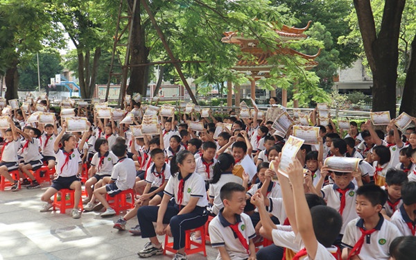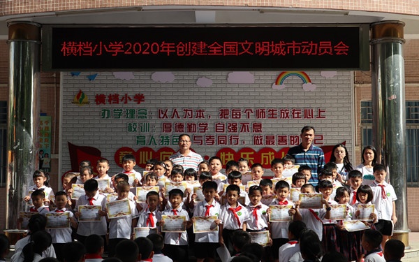 7月17日早上八点正,阳光灿烂,横档小学集合全体师生在教学楼前举行2019学年下学期散学典礼暨法治安全教育。