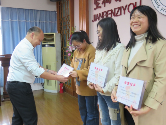 培红小学的班主任、辅导员队伍表现出色,在上个学期获奖不少,硕果累累!梁惠鹏校长为她们一一颁奖。其中潘佩芬老师获2020-2021年度“黄圃镇光荣在岗二十年少先队辅导员”称号,冼炜贤老师、梁桂珍老师获2020-2021年度“黄圃镇光荣在岗十年少先队辅导员”称号。赖金玲老师获得2020年“淬炼师德师能,践行育人使命”师德主题征文活动中,获小学组三等奖。梁桂珍老师、郭凤珍老师、吴敏涛老师获2020-2021年度“黄圃镇优秀少先队辅导员”称号。