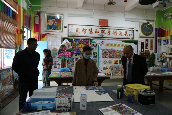 南头镇教体中心梁柳珍在梁惠鹏校长、王剑平副校长、黄炎娟副主任的带领下,巡视校园,对学校环境卫生、校园安全、校园秩序以及校园文化阵地的建设等进行实地查看,在巡视中,梁惠鹏校长详细汇报学校的发展规划以及“五项管理”“双减”工作的措施以及成效。