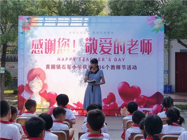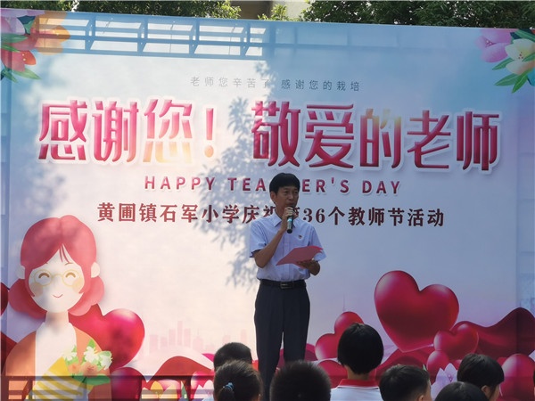 为营造浓郁的尊师重教节日氛围,激发教师不忘初心、立德树人的责任感;培养学生尊师敬师、学会感恩的人格品质。黄圃镇石军小学开展了“感谢您!敬爱的老师”为主题的简短而隆重的庆祝活动。本次活动由大队辅导员梁毅强老师主持。
