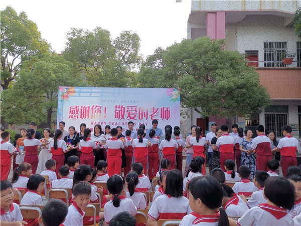 活动首先由梁蔚菁校长致辞,梁校长深情地教导同学们要学会尊敬和感恩老师,并代表学校向全体老师致以节日的祝贺,感谢老师们的辛勤付出。在过去的一学年,全体老师团结协作,迎难而上,出色地完成了“线上教学”和抗击疫情的任务。在新的一学年,全体老师一定会秉持石军村革命老区的优良传统,不断淬炼师德师魂,争做“四有”好老师。