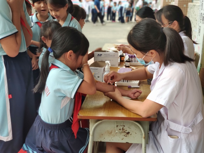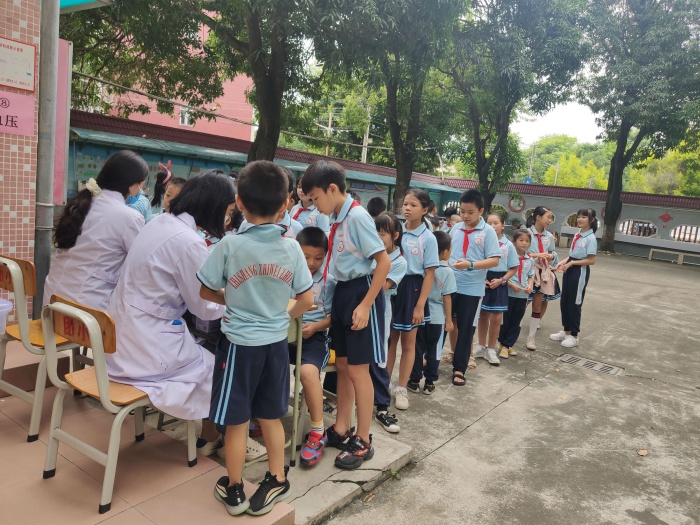 为让家长和学校全面了解和准确掌握学生的健康状况,引导学生关注自己的身体健康,做到有疾病“早发现,早预防,早治疗”,有效抑制各项传染病在学校的传播。2020年9月28日,中山市黄圃镇人民医院体检科,医师团队共10余人,来到团范小学对全体学生进行了一次全面的健康体检。