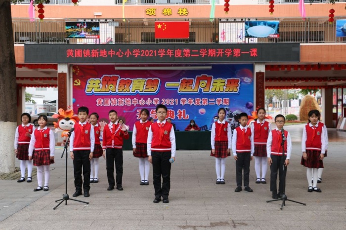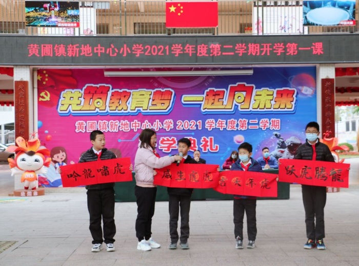 历添新岁月,春满旧山河。和风如酒,向每一朵花低语,和每一棵树呢喃,春意盎然;韶光倾洒,照进校园,落在叶间,最后出现在同学们微扬的嘴角边,师生怡然。告别了愉快的寒假,在虎年上元节来临之际,新地中心小学全体师生再一次相聚在美丽的校园,共同参与一场盛大而又欢乐的开学典礼。