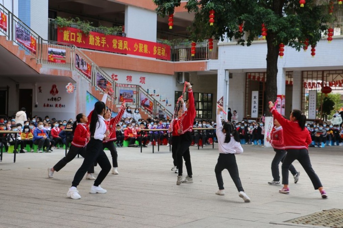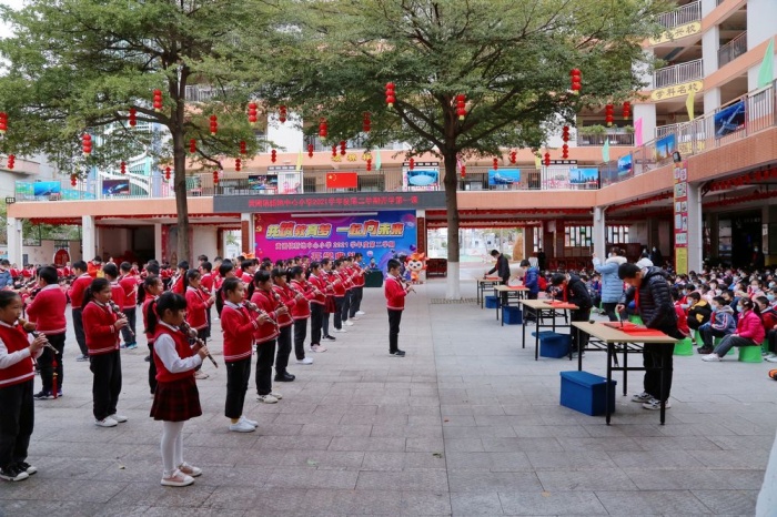 紧接着,几名五年级的同学为全体师生带来了主题为“星空体育一起向未来”的朗诵节目。嘹亮深情的声音里,飞舞着对未来的幻想,铺展着一条奔向梦想的大道。随后精彩纷呈的联欢节目,一曲悠扬的葫芦丝似泉水缓缓流淌,乐章里筑起了想象的王国。一张张普通的红纸自剪纸组同学灵巧的手飞出,化作了可爱的冰墩墩和雪容融,那是对北京冬奥的期盼祝愿;化作了一只气势威武的老虎,那是师生们虎虎生威的美好寓意。挥毫落纸如云烟,写就“虎年大吉”与“龙腾虎啸”;一年级的同学们唱歌、跳舞,各年级的学生展现花样跳绳,朝气蓬勃;教师为同学们发放新年糖果,整个校园汇成了一片欢乐之海。