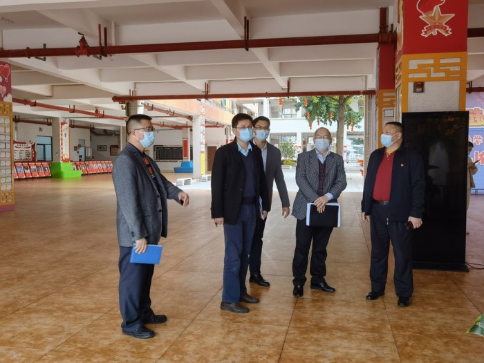 在吴国有校长的指引下,梁泳辉书记一行巡视了新地中心小学校园,在吴校长的介绍中了解到学校的教育教学质量一直处于全镇前列,学校的花样跳绳和葫芦丝特色得到重点推进并在全国和省市比赛中屡获佳绩,对新地中心小学的全面发展给予肯定。重点检查了学校疫情防控各项设施,认真听取开学前学生返校情况,强调要严格落实中山市疫情防控相关要求和工作部署,提出要督促尚未返回中山市的学生尽早回到市内,做好开学前健康申报和核酸检测。在梁泳辉书记强调要继续做好常态化疫情防控工作,将维护校园安全的责任扛在肩上,进一步完善细节,把各项准备工作落实到位,确保新学期各项工作平稳有序开展。