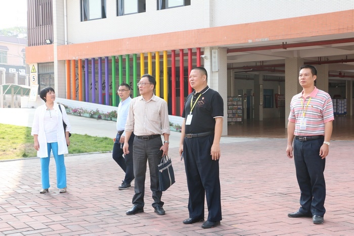 廖诚副书记听取后,对新地中心小学的红棉文化的规划和推进生命教育的课题研究给予充分的肯定。并在科研发展中强调:1、党建带动科研发展,找重点、找典型,推动队伍建设。2、要充分发挥专家引领,挖深、挖准科研的研究方向与方法。3、科研兴校,提升学校软实力。4、要重视科研对教师成长的作用,找好人、找准人,提高教师科研能力。在谈到如何办好一所好学校的时候指出,要注重“1+5”的模式,即党建加德、智、体、美、劳。“找准短板,弥补短板”,特别在劳动教育方面要做到培训劳动力、端正劳动态度、确定劳动内容、明确劳动时间、选择劳动场所、锻炼劳动技能、开展劳动竞赛、实施劳动评价、形成劳动文化、养成劳动习惯。最后,廖副书记希望新地中心小学在八十周年校庆中做好防疫、消防、人身安全工作,并预祝庆典取得圆满成功。
