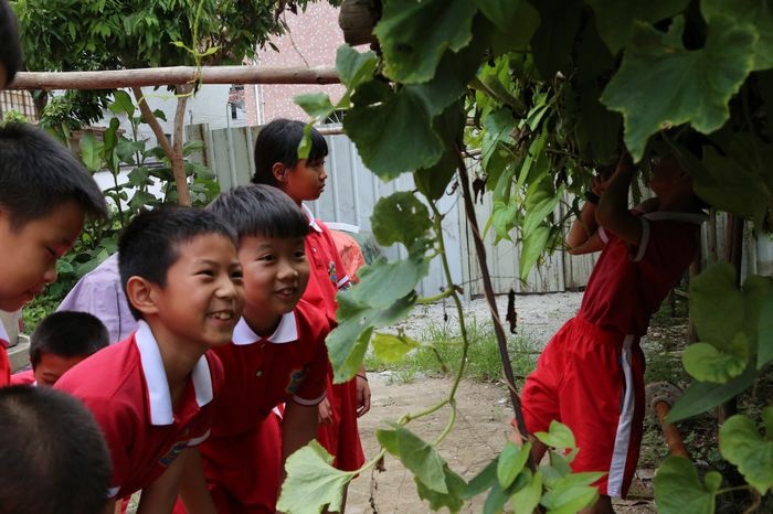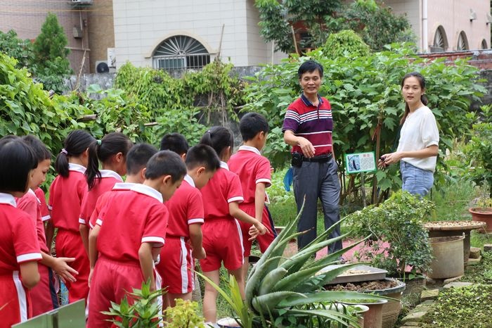 本次揭牌仪式的嘉宾为黄圃镇教育和体育服务中心副主任袁港喜先生、农场主即学生家长:罗洛怡家长、郭靖然家长、新地中心小学校长吴国有先生、科学教师陈渐成和陈蔼龄老师以及50名学生代表。首先,由袁港喜先生、吴国有校长、农场主、陈渐成老师进行简单而隆重的揭牌仪式。随后,邓蛟龙主任针对新地中心小学劳动教育教学计划进行介绍,并提出劳动教育将进一步在新地中心小学得到落实,专设劳动教育必修课、开展一系列劳动主题教育活动等。紧接着由陈渐成老师带领学生代表参观劳动实践基地,并进行讲解。在陈渐成老师的带领下,学生尝试如何拔草,知道如何制作以果蔬等厨余垃圾为原材料的肥料,了解粉葛的生长周期,对比韭菜与葱的区别,体验劳动实践的乐趣。快乐的时光总是短暂的,学生们依依不舍的离开劳动基地,期待再一次的到来。