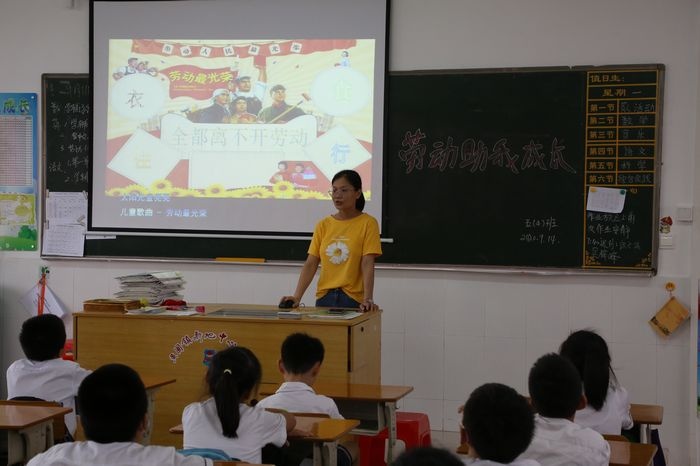 各班结合本班的实际情况,开展形式多样的主题班会活动。高年级的同学亲自策划主持,从体力劳动到脑力劳动,再上升到家国情怀,图文并茂的让同学们深刻的理解到劳动的重要性。中年级的同学通过唱劳动歌曲,激发劳动热情。并在课堂上体验怎样叠衣服、洗鞋子……不但让学生掌握技能,也让学生明白原来劳动也有很多技巧。低年级的同学则通过欣赏学生劳动的图片和视频,让他们知道,年纪小也可以做很多力所能及的家务劳动,同时也感受到劳动的喜悦。最后各班主任还总结了上两周学生开展活动的情况,表扬了优秀学生。