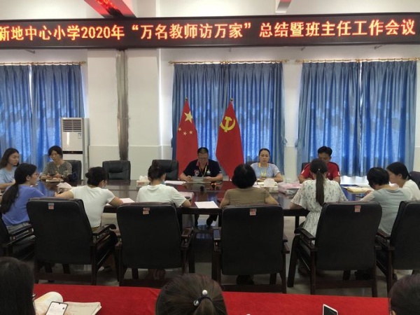 2020年7月3日上午,新地中心小学召开了“新地中心小学2020学年度第二学期“万名教师访万家”总结暨班主任工作会议”,吴国有校长、杜晗婷主任、何建辉主任、大队辅导员杜秋红老师以及全体班主任参加了此次会议。