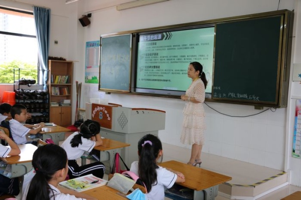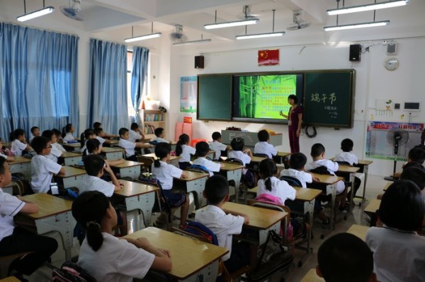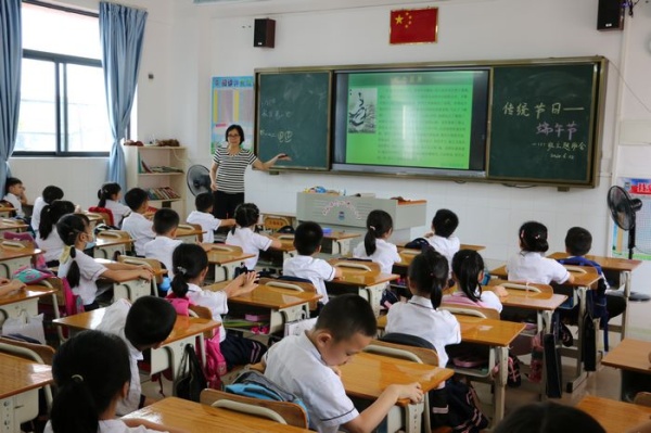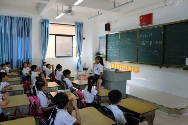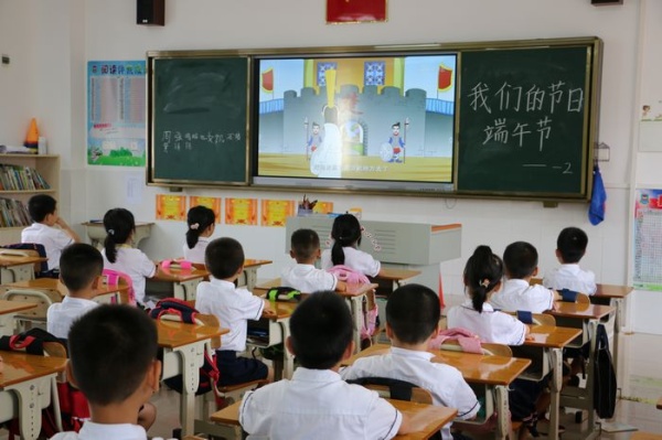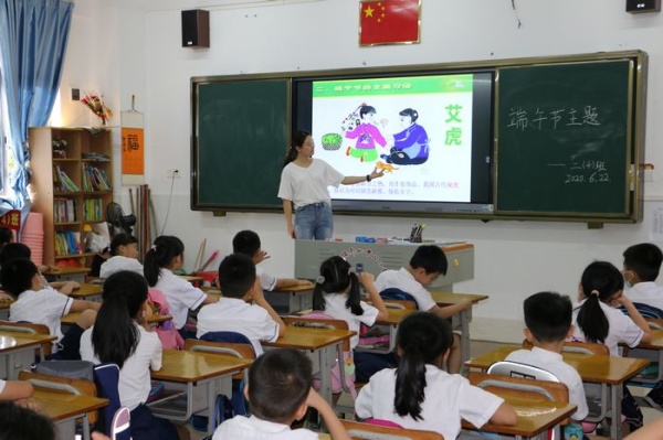 按照学校端午节活动方案的统一部署和安排,学校各个班级根据方案要求纷纷开展了主题鲜明、内容丰富、形式多样的班会课。班会课前,师生们做了大量准备工作。他们利用课余时间搜集有关端午节和屈原的资料以及童谣、诗词,对端午节及其习俗的来历和屈原的生平、主要成就有了初步的了解。班会课上,围绕端午节这个主题,各个班级分别开展了形式各异、丰富多彩的主题活动,学生或交流对端午节来历的认识,或结合生活实际畅谈端午节各地传统习俗和童谣,或讲述屈原的爱国故事、吟诵屈原爱国诗歌。其乐融融的氛围使全体同学感受到了端午节的文化内涵,体会到了我国传统节日的独特魅力,也提高了学生对民族文化的认同感和自豪感。