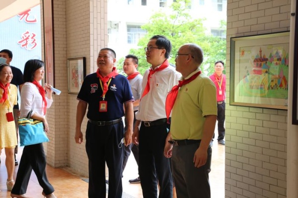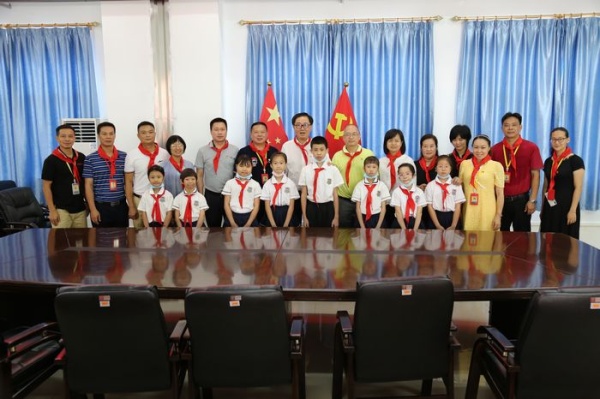 上午10:00黄圃镇党委书记关瑞麟,黄圃镇党委委员李华军,教体局局长蒋金开,黄圃镇党政办主任黄海燕,教育事务指导中心主任何凤云,新地村党支部书记罗宝友、新地村党支部副书记何淑卿、黄圃镇少工委总辅导员李惠妍等领导一行到达新地中心小学。到达学校后,黄圃镇党委书记关瑞麟就问起孩子们“庆六一”活动情况,并走到班级,观看班级环境,为孩子们送去节日的问候。然后,镇领导与学校行政班子在会议室进行了会谈,吴国有校长汇报了学校防疫成果还有学生在校的学习、活动情况。学生代表讲述了自己的梦想:有的想当医生,有的想当飞行员,有的想开蛋糕店……得到了现场大家的称赞。