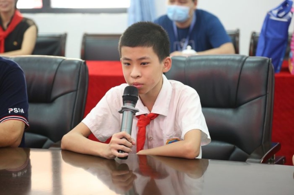 最后,镇党委书记关瑞麟发表讲话,关书记为同学们讲述了红领巾的历史,还以自己的成长故事激励学生努力学习,实现自己的梦想,将来成为国家的栋梁,为祖国贡献力量。关书记还要求孩子们学会感恩,要感恩社会,感恩父母,感恩老师,感恩他人。同时大力赞扬了学校的爱国主题教育和校园文化建设。接着为学生代表赠送了节日礼物,送上了节日祝福,表达了镇党委、镇政府对学生学习、生活的关心之情。