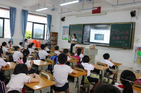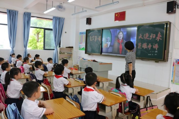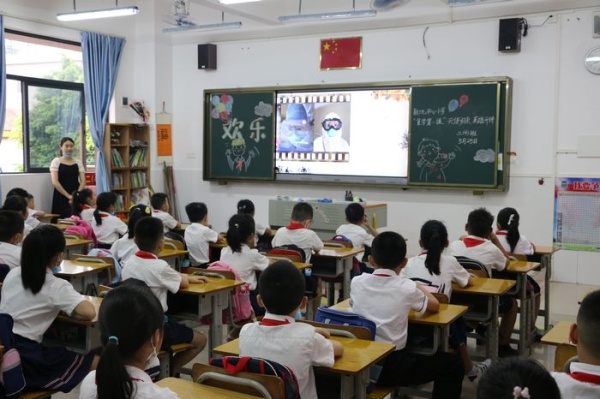 接着,一二三年级各班班主任组织同学们进行“天使归来,英雄开讲”复学第一课主题班会活动,让同学们了解援鄂医护人员们的先进事迹,汲取榜样的力量。各班同学观看“天使归来,英雄开讲”视频,视频中中山支援湖北第三批医疗队队长陈智伟和中山支援湖北第一批医疗队队员魏翠云讲述中山医疗队驰援湖北的经历与感受。从两位医护人员声情并茂的讲述中同学们了解到,在抗疫过程中医护人员化身钢铁战士勇往直前,感悟到医护人员的伟大,更了解到全国人民万众一心抗击疫情的民族凝聚力。