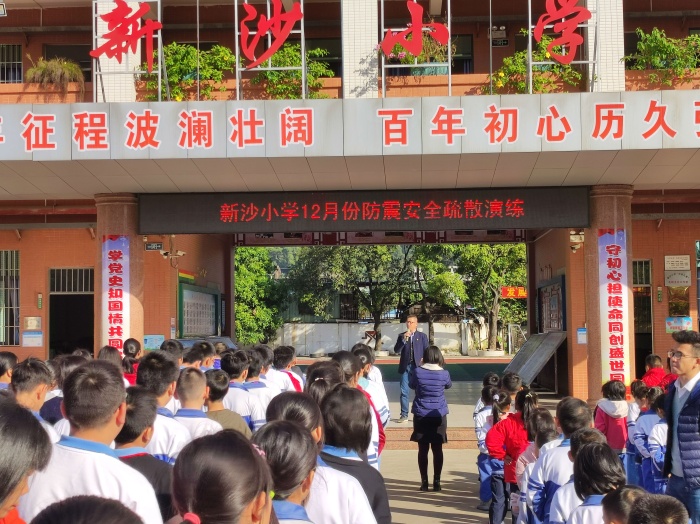2021年12月1日上午大课间,新沙小学组织进行了12月防震应急疏散演练活动。