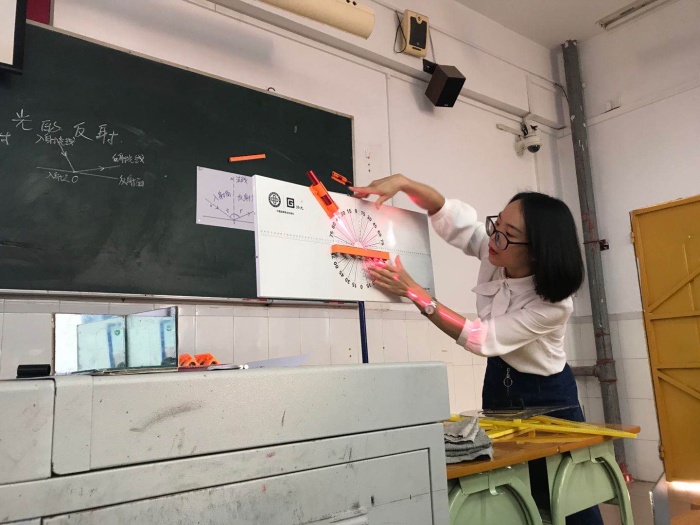 在比赛过程中参赛教师准备充分,利用激光笔、小镜子和白板等实验器材和现代化的多媒体教学手段,化抽象为直观,调动了学生学习的积极性,课堂气氛活跃,师生互动良好,教师的主导地位和学生的主体地位得到了很好地体现。