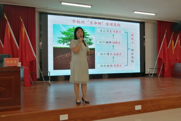 在家门口就能共享前沿教育理念。2020年6月17日早上,黄圃中学何彩霞校长到永善县中山博爱学校举行名校长论坛。中山博爱学校主要由中山市政府牵头出资捐建。在博爱学校,何校长给全县中小学的正副校长带来了一场头脑风暴式的讲座:《寻找学校科学发展之路—-以一所薄弱初中成功转型为例》,让校长们沉浸其中。何校长是广东省骨干校长,广东省中小学教师信息技术应用能力提升工程2.0培训专家,中山市责任督学,中山市先进教育工作者。她以一所农村中学——黄圃镇中学为研究对象,拼搏9年,研究9年。镇中从合并之初薄弱、焕散、滞后到如今优质、凝聚、先进,背后有着深刻的原因和宝贵的办学经验。何校长真诚地和校长们分享镇中的历史、现状和未来。讲座从校长的“六种专业职责”开始,到建立学校的“生命树”管理架构,明确提升学校核心竞争力的途径,到思考“怎样培养人”的核心问题,从建立起“润泽生命”的文化体系、“润泽课程”的教育体系,到迈出了“智慧课堂”的步子,讲座中所涉及到的办学效果都用实例、数据说话,让人信服,尤其是在何校长分享行之有效“教研训三位一体”教师发展模式,让与会者获益良多、感慨颇深。在讲座现场,何校长还与在座校长们现场互动,提问、思考、反馈、讨论,学习氛围热烈。他山之石,必能攻玉。何校长的讲座有大爱、大情怀、大格局,她带来的镇中经验,让所有的研修人员如沐春风,醍醐灌顶。
