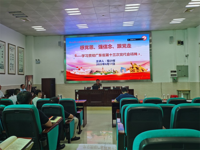 学校党总支书记、校长程少辉围绕省第十三次党代会精神上专题党课,从省第十三次党代会的重要意义、李希书记报告的主要内容、结合学校实际狠抓落实等方面,全面系统、深入浅出地解读省第十三次党代会精神。他说,省第十三次党代会是在广东进入全面建设社会主义现代化国家新征程、豪情满怀迎接党的二十大胜利召开的重要时刻召开的一次十分重要的会议。