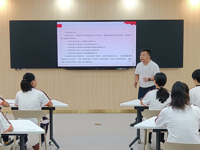 在课上,刘尚楠同志以视频导入的方式,向大家提出一个问题:当代青年到底应该是什么样子的?引发同学们的讨论。随后,他以“蛟龙”入海、“嫦娥”探月、“神舟”飞天、“祝融”探火、“羲和”逐日、“天和”遨游星辰、“北斗”组网;大飞机首飞,万米载人深潜器、极地破冰科考船建成交付,5G网络全球规模最大、5G终端用户占全球80%,以上这些重大事件吸引同学们思考,在这些重大领域取得的重大成就,关键在于什么?关键在中国共产党的领导。刘尚楠同志以“三个务必、三件大事”等25个关键词,向同学们全面立体地解读党的二十大报告。通过结合时事政治,引用发生在身边的故事,比对中西文化等,清晰明确地向同学们宣讲全面建设社会主义现代化国家、全面推进中华民族伟大复兴,关键在党。