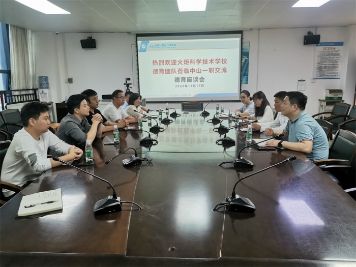 座谈会由中山一职德育处副主任黄慧宇主持。“德育有道润物无声,立德树人铸培根铸魂”,会上,两个学校就德育团队建设、新班主任班级管理、学生干部培养、团委分工、学生请假,以及运动会排练和体测训练等话题进行了深入的交流。
