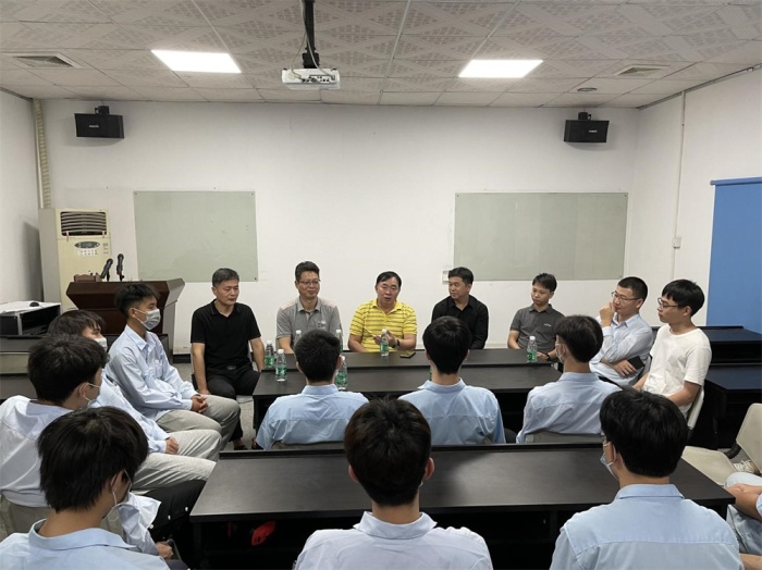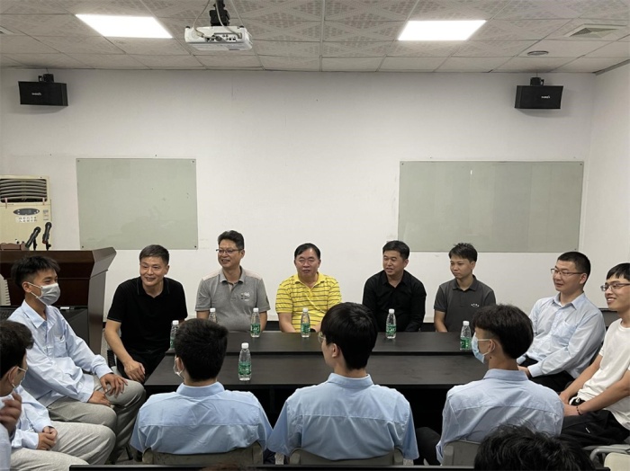 在随后的交流会中,广盛公司宋志刚副理对同学们在岗位上的表现给予高度的肯定,并表示广盛公司与科技学校已经是超过十年的合作伙伴,双方已经形成了规范成熟的合作模式,将来也会继续和科技学校一同探索更深入更高质的校企合作道路。陈建国校长表示希望通过校企合作深化产教融合,在专业建设、企业导师、学生实习、技能培训等多领域进行深度合作,实现学校、企业与学生三方的互利共赢。