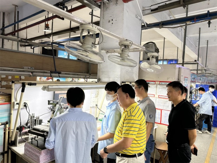 经过两个月的实习,同学们对岗位工作早已上手,正专心致志地盯着手上的产品部件进行精细的操作,丝毫没有发现老师们热切的目光。陈建国校长悄悄地走到同学们的身旁,关注着同学们工作的一举一动,一声“同学,工作辛苦吗?”,学生投入工作的注意力这才被拉了回来。老师们关切地询问学生在生活和工作中的适应情况和感受,学生腼腆地一一作答,还不忘演示手上的工作流程,向老师们介绍自己的工作内容。