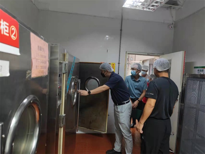 为做好学校重点场所食堂的疫情防控工作,筑牢校园健康安全防线, 2022年10月27日,中山市火炬科学技术学校党总支委员、副校长梁建雄、纪检委员刘杰及总务处相关同志组成的检查小组对学校食堂进行疫情防控、食品安全、消防安全大检查。