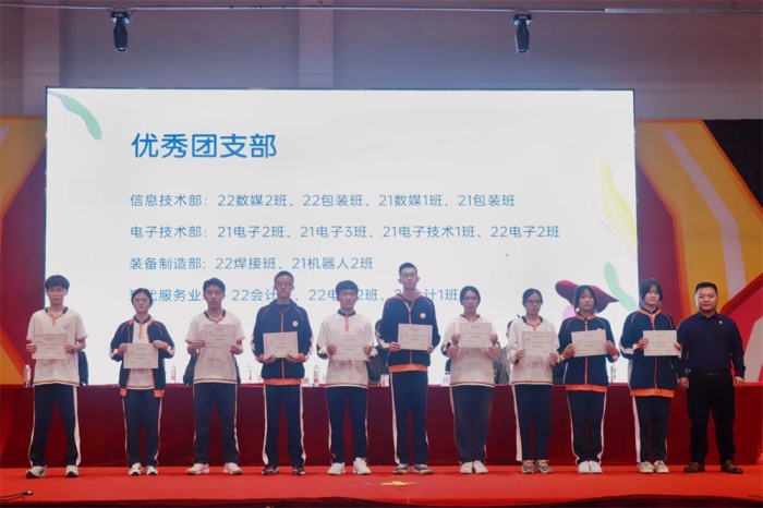 最后,学校领导分别为上学期荣获“优秀团支部”、“先进班集体”的班级代表颁奖。相信新的学期,会有更多的班级在榜样的引领下成长!