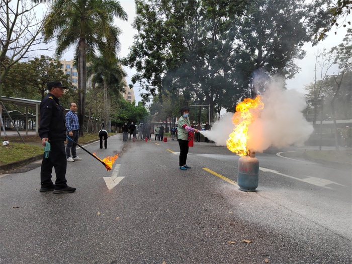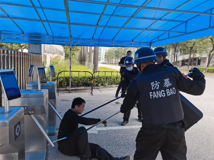培训会结束后,由学校安全主管姚潮茂同志组织全体后勤人员进行了传染病处置演练、消防灭火演练、最小应急单元防暴演练、公安联动一键报警器演练等培训活动。