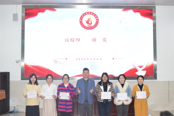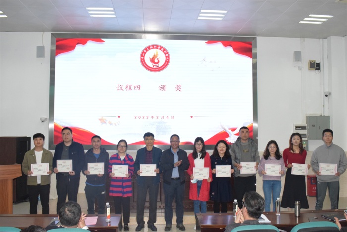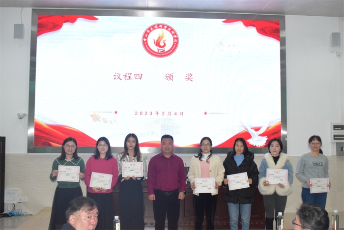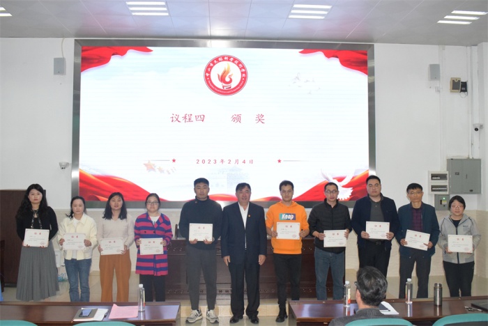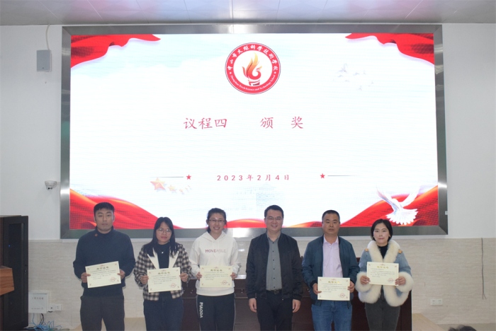 会议表彰了2022年度市优秀教师、校优秀班主任、市教学能力大赛及思政论文评选获奖教师,并向新聘为市级中心教研组成员的教师颁发聘书。
