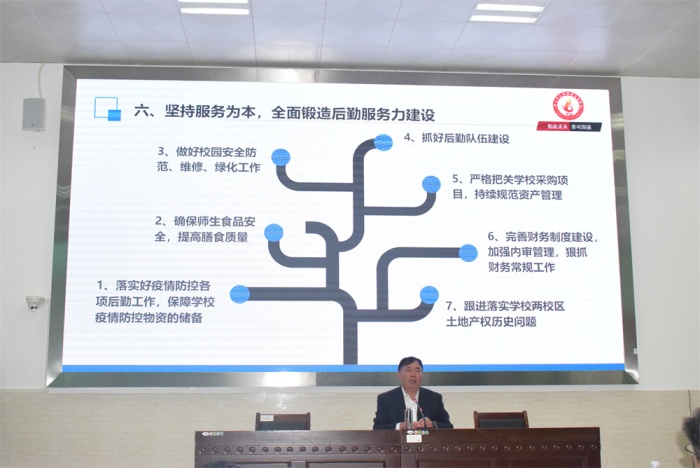 会上,学校党总支书记、校长陈建国以《求真务实,规范管理,打造科技学校品牌特色》为题,对全体教职工进行了新年寄语。他回顾了过去一年各部门工作所取得的优异成绩,感谢了大家的用心付出,并对学校新学期的重点工作进行了总体部署。