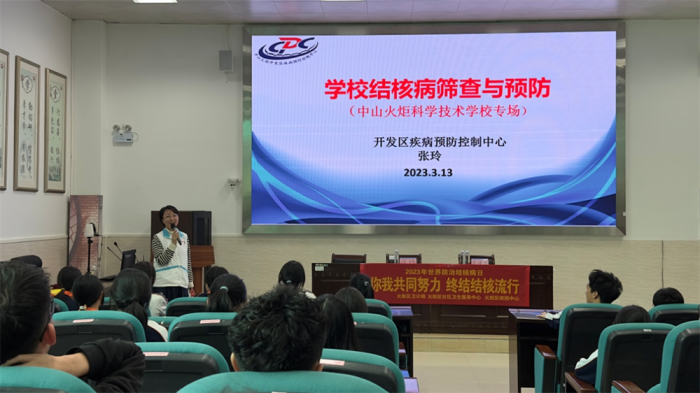 为进一步做好校园结核病预防健康教育工作,中山市火炬科学技术学校于3月13日下午,在开发区校区报告厅举办了结核病防治知识宣传专题讲座,约180名高二级学生和部分老师参加此次培训。