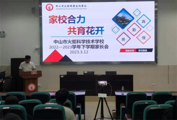 3月12日下午,中山市火炬科学技术学校在两校区召开2023年春季学期家长会。此次家长会分为校级家长会、班级家长会两个阶段进行。会议由学校德育处副主任袁建主持。本次会议旨在进一步加强学校与家庭、教师与家长的密切联系,增进每一位家长对学校的了解,促进学校教育和家庭教育双向协力,形成教育合力,真正达成共同培养孩子健康成长的目的,为家校共育筑牢更坚实的基础。