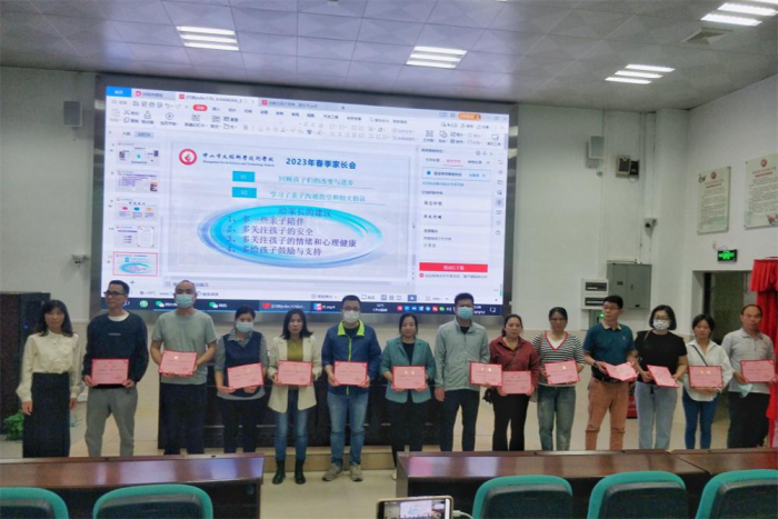 第一阶段,学校德育处凌杏丝主任以《家校合力,共育花开》为主题,向与会家长介绍了学校的基本情况,重点介绍学校的德育管理工作、办学业绩,以及孩子们入学以来在行为习惯养成、专业课程学习、遵守校规校纪等方面的变化和进步。随后,组织全体家长一起学习《广东省中小学家庭教育亲子沟通指引》,分享了父母与孩子沟通的有效方法,引导家长建立正向积极的家庭关系,营造良好的家庭氛围,助力孩子保持健康积极的学习心态。并向家长提出几点建议:1.多些亲子陪伴,尽可能给孩子创造一个积极向上、和谐轻松的家庭环境;2.多关注孩子的安全,关注他们的交友情况,加强孩子的青春期教育和引导;3.多关注孩子的情绪和心理健康,及时进行疏导。4.多给孩子鼓励与支持,常与老师联系,多给孩子一点信心,了解孩子在学校的情况,做孩子成长强有力的后盾。