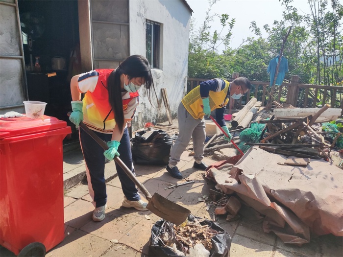 志愿者们十分关心老人的身体状况和日常生活,嘘寒问暖,闲话家常,现场气氛其乐融融。随后,在征得老人的同意后,社工便带领志愿者们开始打扫房屋、清理庭院垃圾、卫生死角及杂草,以实际行动践行雷锋精神。