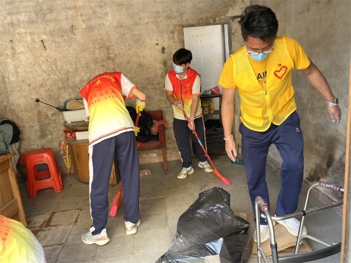在简单的志愿服务培训后,社工、党员同志和学生志愿者们带上清洁工具,分别前往翠亨村、泮沙村、左步村和南朗村探望7户特殊困难老年人。