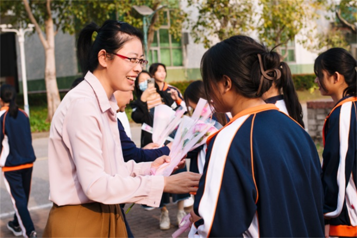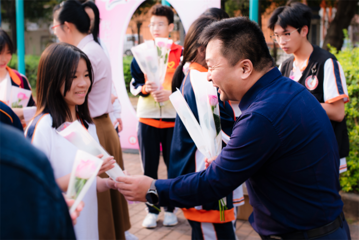 国旗下讲话仪式结束后,学校领导、各学部部长和班主任老师们,纷纷热情地为全校女教师、女学生送上鲜花以及节日的祝福,展现了学校浓厚的人文关怀及师生情怀。