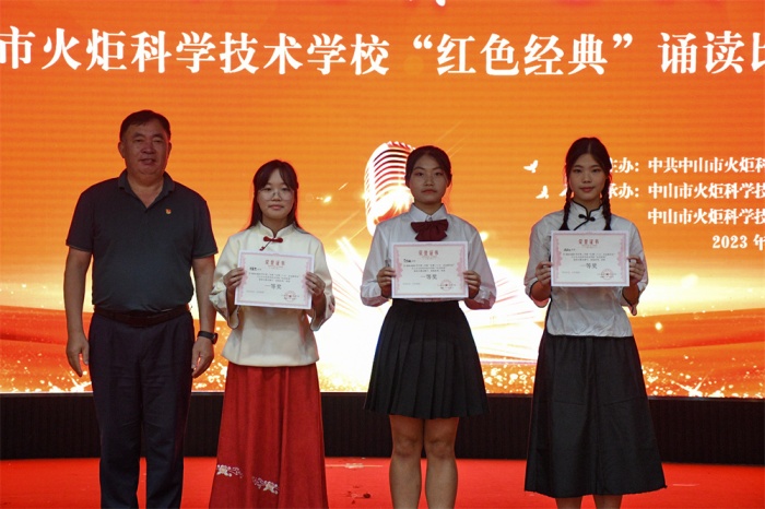 中山市火炬科学技术学校高度重视学校党建工作,深入贯彻习近平新时代中国特色社会主义思想和党的二十大精神,落实“立德树人”的根本任务。本次活动让同学们了解了更多革命先烈们的事迹,在诵读中领悟了红色经典美文的魅力,同时也激发了同学们的读书热情,锻炼了他们的语言表达和创新能力,从中汲取奋发向前的力量。本次红色经典诵读比赛,不仅展示了火炬科学技术学校学子的精神风采,更激发了同学们爱党爱国的热情。学校将以此次活动为契机,开展系列活动,深入学习党的二十大精神,继续挖掘红色育人资源,深化红色教育,多方位把爱国情、强国志、报国行融入校园生活,让学生赓续红色文化基因,奋进时代新征程!