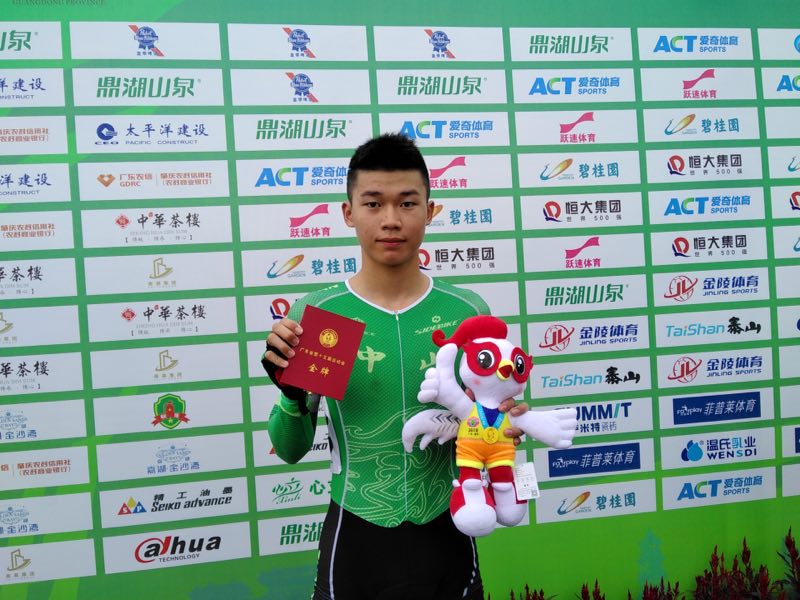 公路自行车男乙1KM个人计时金牌:高海涛 带训教练:李富吉 输送镇区:沙溪